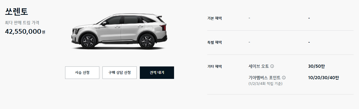 기아멤버스 포인트 적립: 구매 시 10만원 ~ 40만원 상당의 기아멤버스 포인트 적립 (회 적립 기준에 따라 상이)