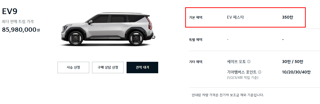 기아에서는 EV모델 차량한정하여 페스타 할인을 진행중입니다. 가장 많이 판매되는 EV6모델은 300만원, EV9모델은 350만원의 할인이 들어가는데요, 자세한 내용을 살펴보세요.